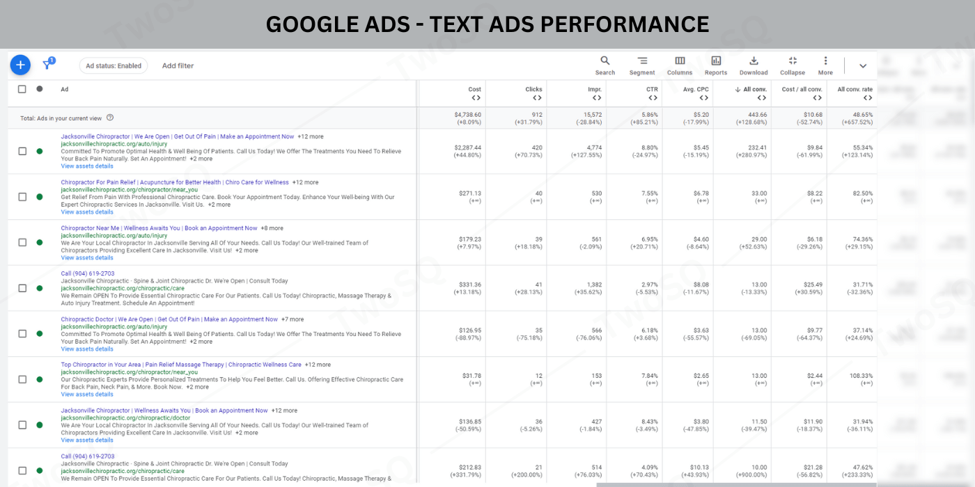 Our team enforced its paid media efforts and diligently worked to improve the clinic's Google Ad campaign. With the right keyword research and creative advertising content, our team successfully increased online traffic and conversion rate to decrease the cost per conversion.